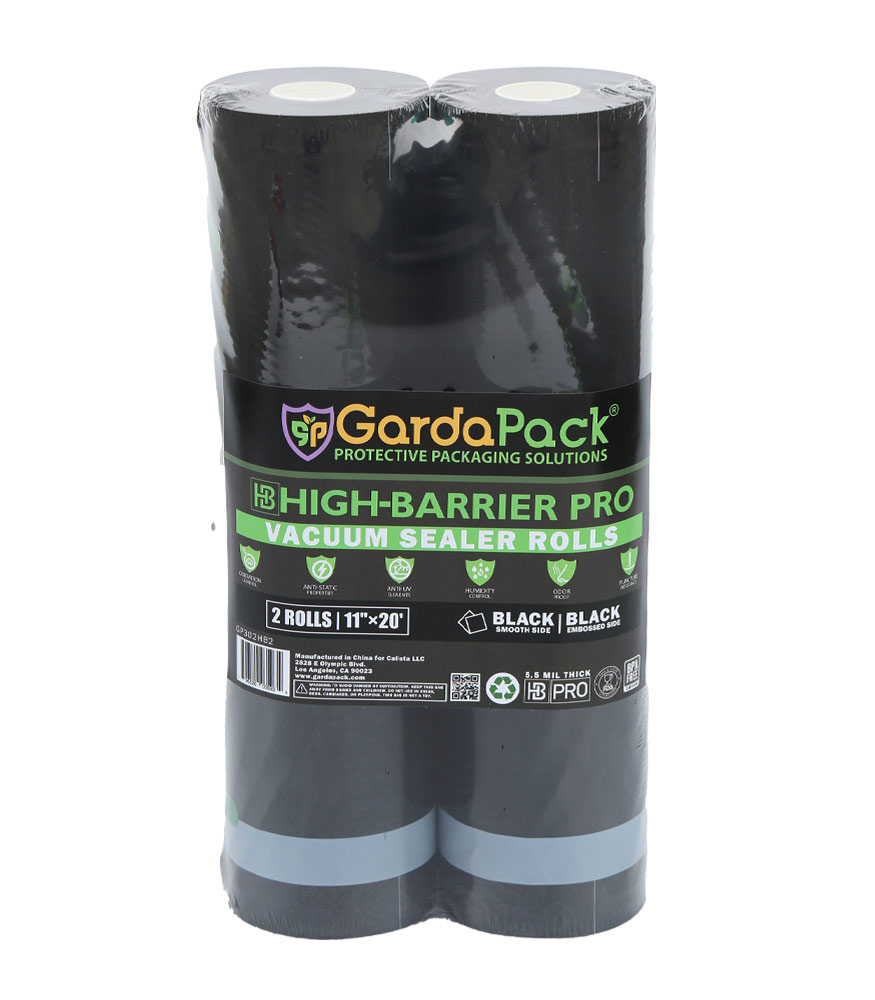 Our GardaPack® High-Barrier Pro 11″x20′ All-Black Vacuum Seal Rolls (2 Pack) offer the ultimate preservation for your sensitive products. This advanced film is engineered with the lowest OTR and WVTR on the market, combined with Superior Puncture-Resistance, Anti-UV Elements, and Static-Resistance Properties. This ensures even the most sensitive perishables remain as fresh as possible until you’re ready to use them.