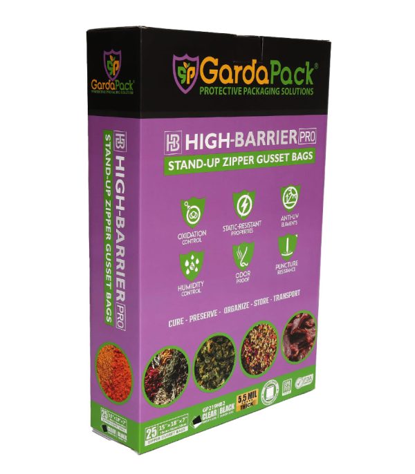 Our 5.5-Mil High-Barrier Pro Line Film (GP55HB2) is the proven result of rigorous third-party laboratory testing, engineered to deliver the ultimate protection for oxygen and moisture-sensitive products. Unlike embossed (textured) storage films, our material features a flat, smooth surface on both sides. This superior construction maximizes material density and film integrity, resulting not only in the absolute lowest OTR and WVTR scores on the market, but also providing the highest degree of puncture resistance by eliminating weak points inherent in textured films. The multiple layers of polymer materials create an impermeable barrier against oxygen, odor, moisture, UV light, and contaminants, effectively maintaining your product’s quality.