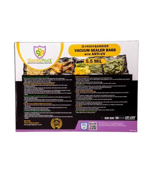 GardaPack® High-Barrier 15″ x 20″ Clear-Black 5.5 Mil Vacuum Seal Bags (50 Count)