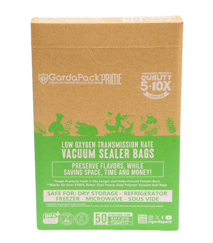 GardaPack’s Prime line is the best-performing vacuum seal bag on the market, uniquely engineered to extend the life, texture, and—most importantly—the full flavor profile of your ingredients 5–10 times longer than standard storage methods.