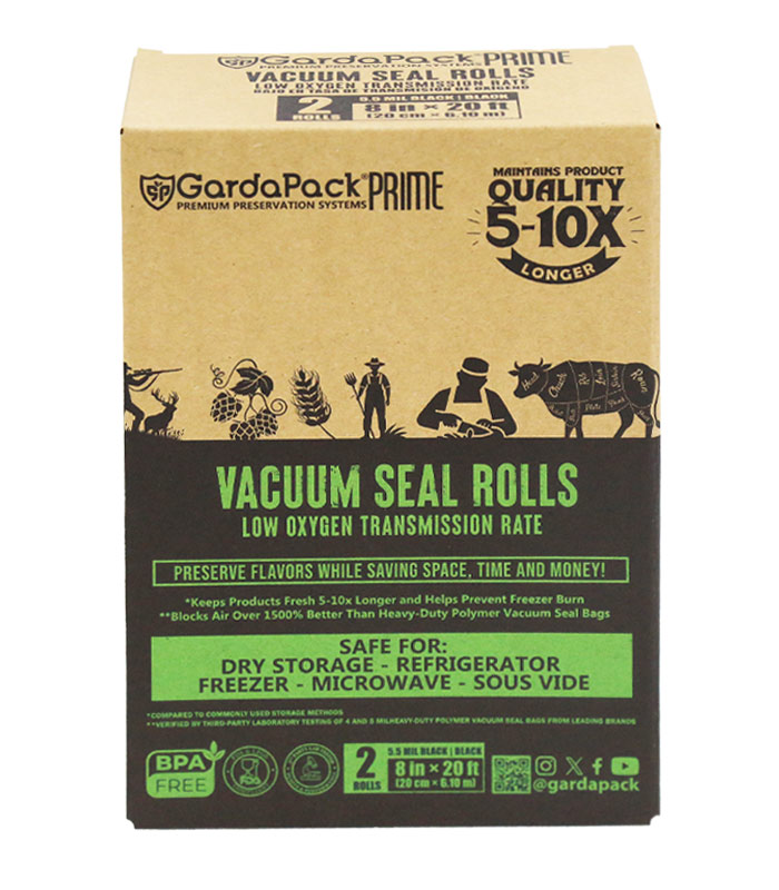 GardaPack’s Prime line is the best-performing vacuum seal bag on the market, uniquely engineered to extend the life, texture, and—most importantly—the full flavor profile of your ingredients 5–10 times longer than standard storage methods.
